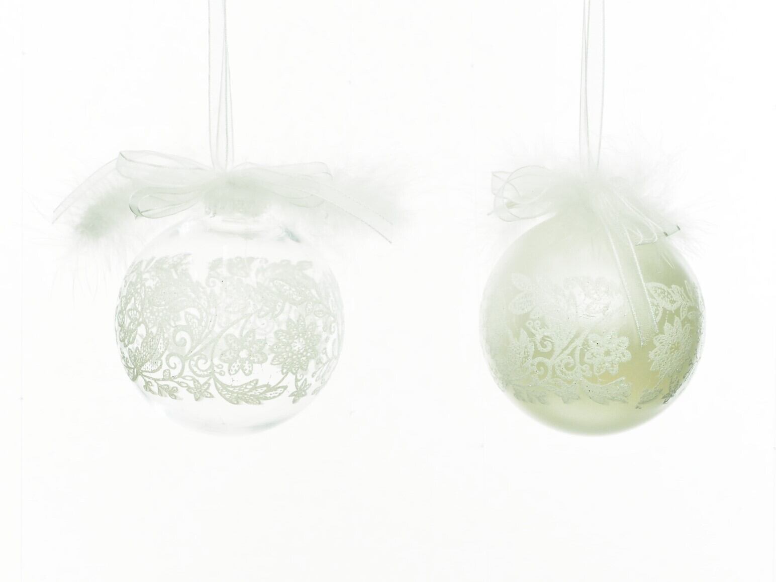 85mm デザインボール レース フェザー&ボウ クリア&シルバー - W77022【 Weiste Christmas Legend 】